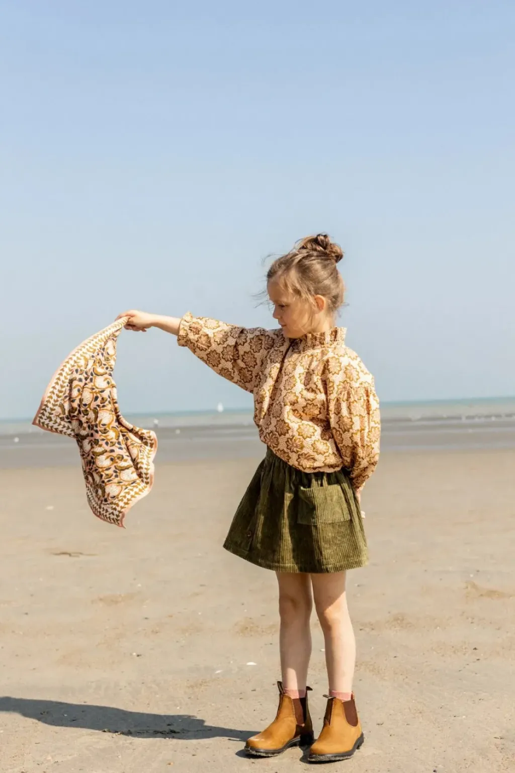 Confectionné artisanalement en Inde, ses couleurs sont réalisées à partir de pigments naturels. Cette confection manuelle peut entraîner certaines « irrégularités » dont nous aimons le charme ♡