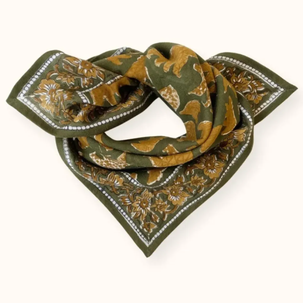 Le small foulard Manika « Ours » Kaki en coton doux est l’accessoire incontournable pour toute la famille. Facile à porter, il se marie à toutes vos tenues et apporte une note de douceur avec son imprimé iconique. Pour petits et grands, ce foulard est à (s’)offrir, à partager, à échanger à l’infini !