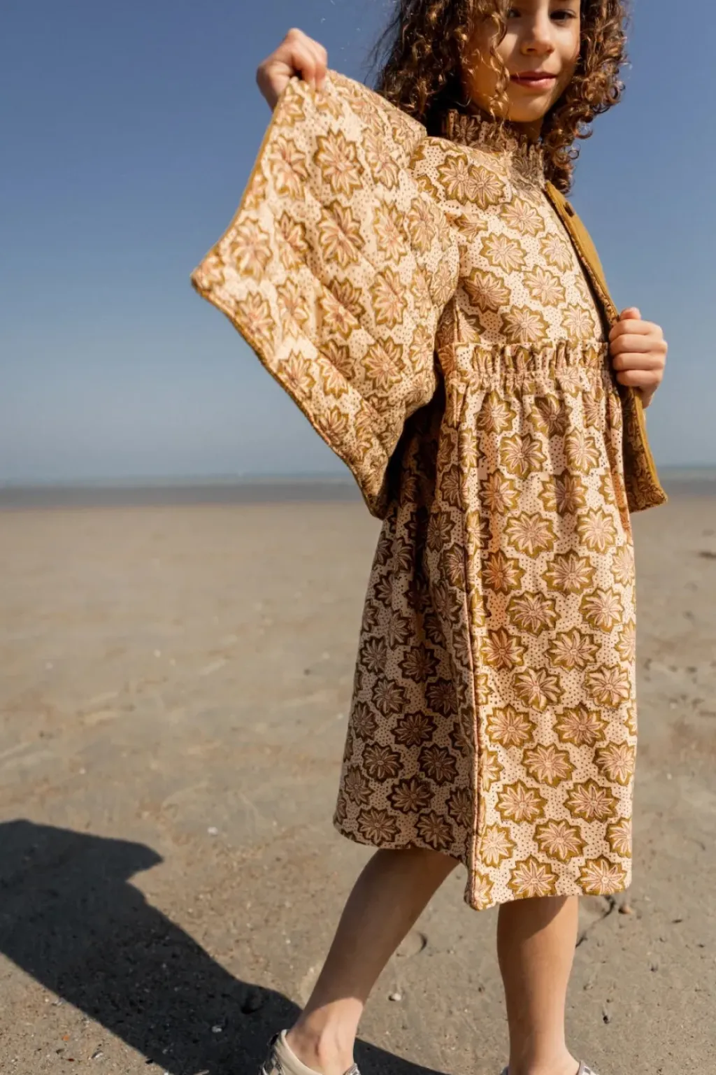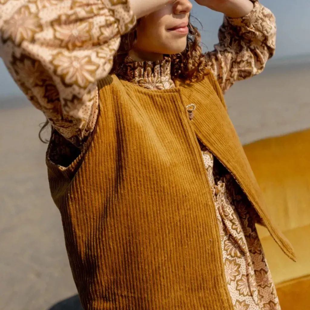 Craquez pour ce gilet sans manche Sakaran Étincelle Macadamia pour un look hivernal adorable ! Réversible, il offre un côté en velours côtelé, et un autre imprimé fleuri, parfait pour s’adapter à leurs envies. Ce gilet sera idéal pour ajouter confort et chaleur aux tenues de vos minis.