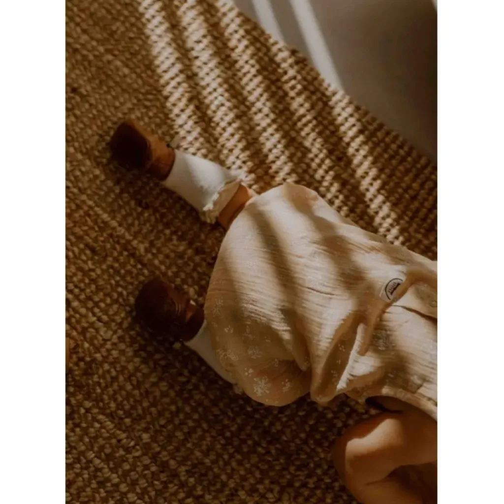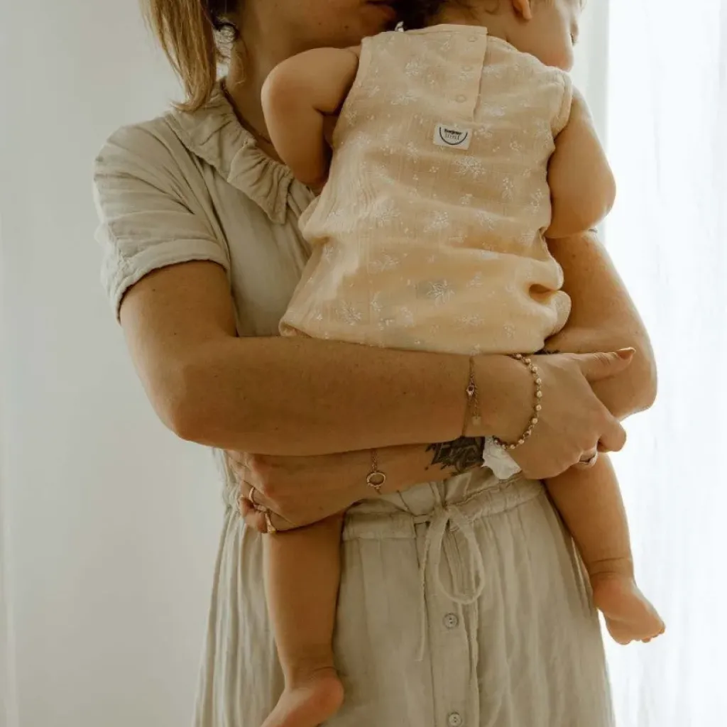 La barboteuse vegetal peach en gaze de coton biologique, issue de la collection golden hour est à la fois cool et élégante, idéale pour une journée décontractée à la maison comme pour un évènement agrémentée de jolis accessoires.