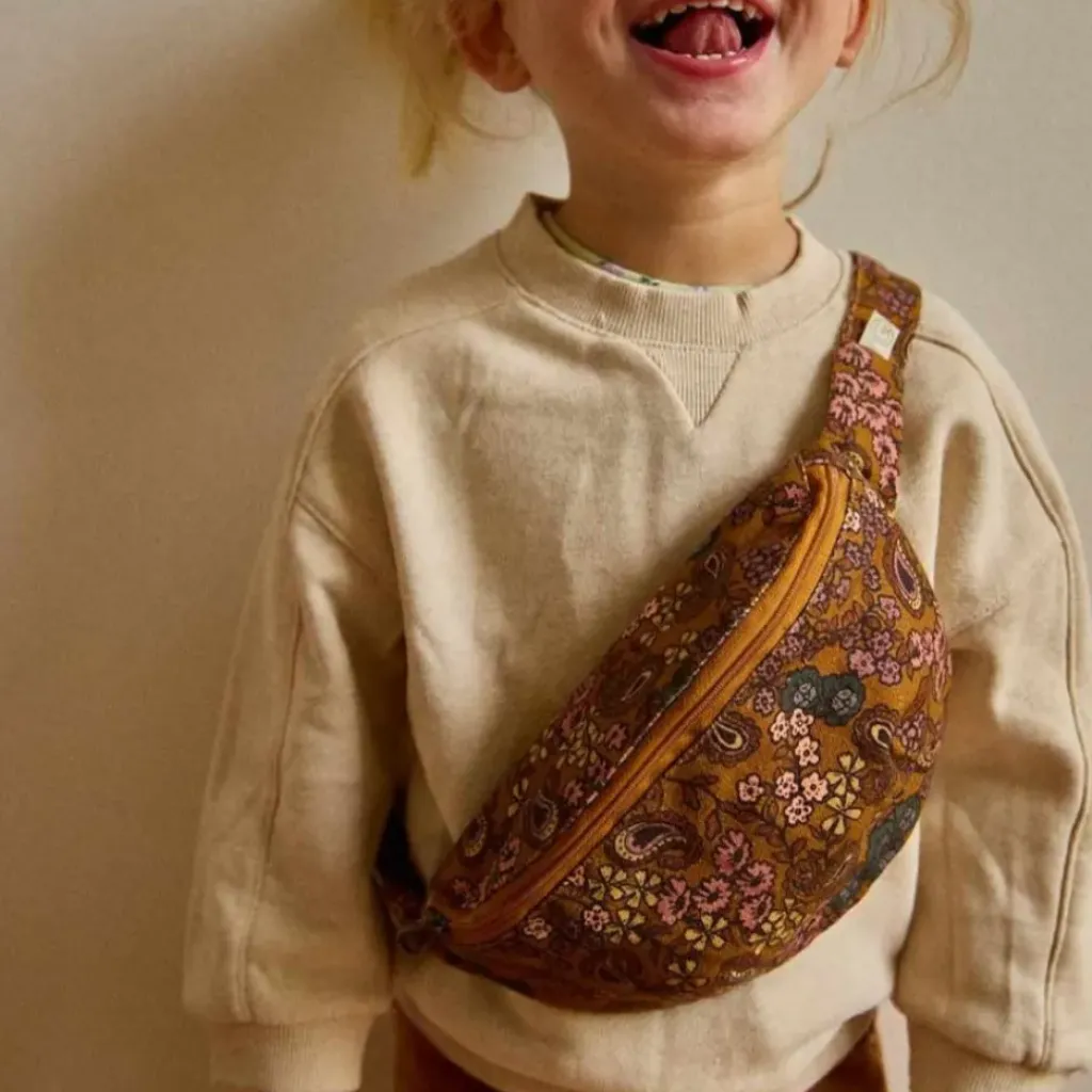 Découvrez l’imprimé Arabesque Ocre de Gabrielle Paris décliné sur le sac banane pour les enfants !