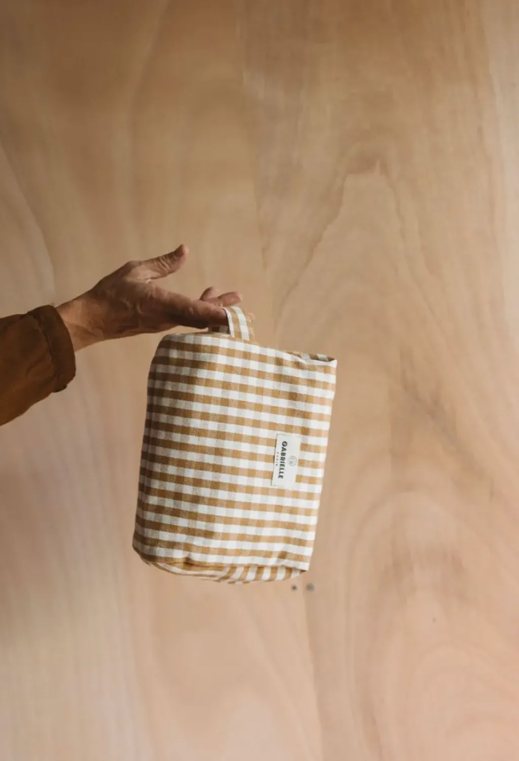 Trousse de toilette vichy de Gabrielle Paris. Craquez pour l’imprimé vichy camel, on adore son côté mixte et son grand format ;). Assortir avec le sac ou la petite trousse.