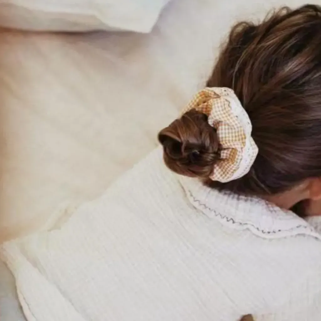 Craquez pour ce superbe chouchou vichy et sa jolie finition macramé. On adore son style rétro et bohème à la fois.