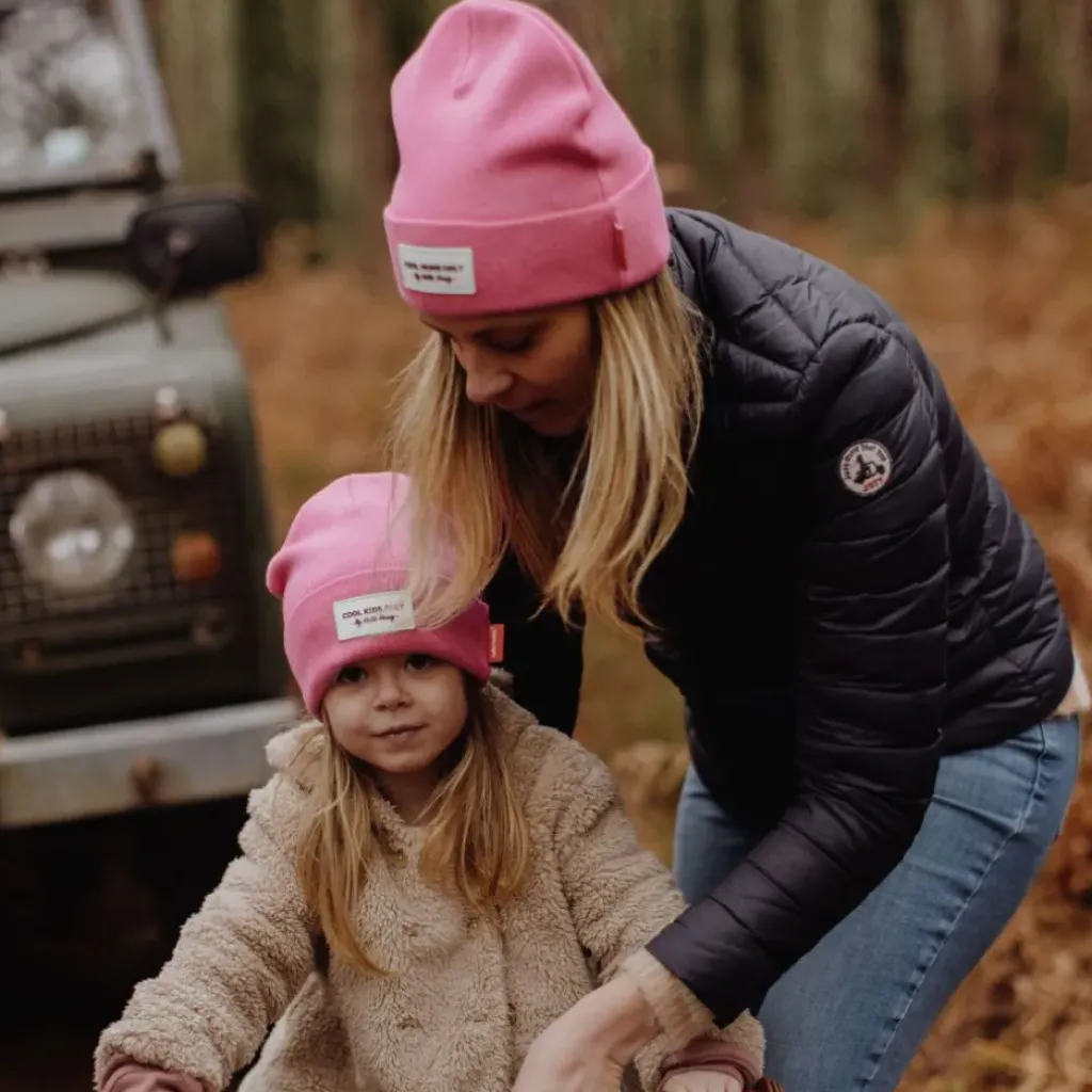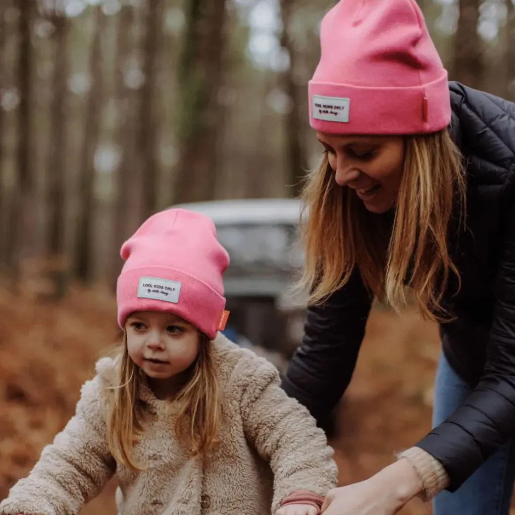 Bonnet Urban chiné dans un coloris flash fuchsia pour chasser la grisaille de l’hiver. Dispo pour les enfants et mamans.