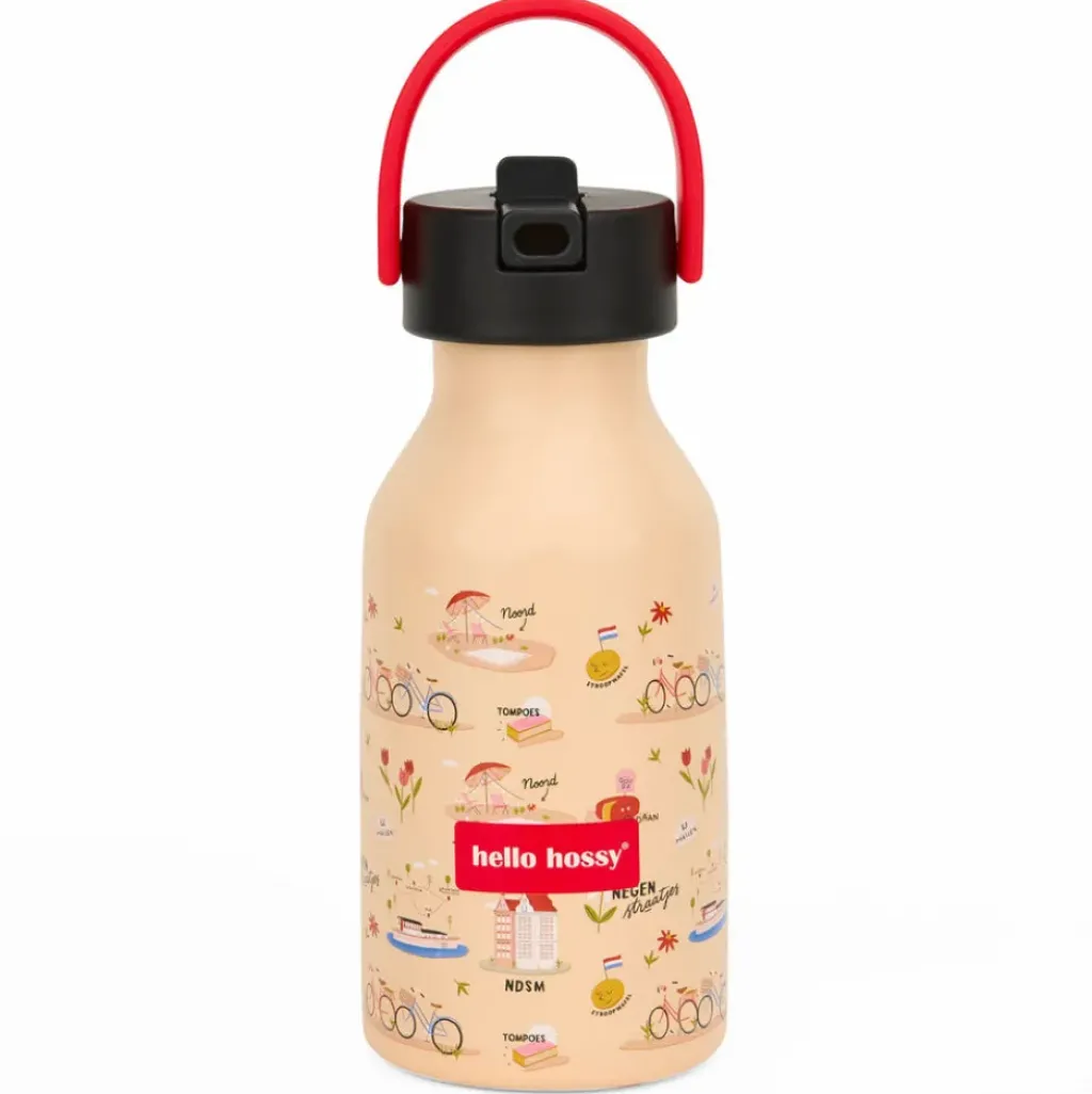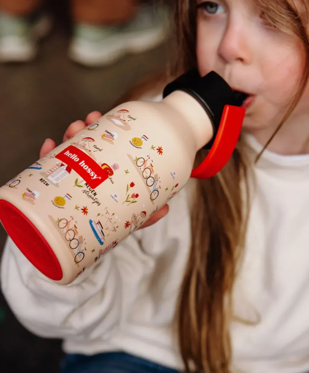 Optez pour la Gourde Isotherme pour enfants, Amsterdam, de Hello Hossy. Tous les détails ont été réfléchis pour les kids : 350ml, anse de transport, paille (ou pas), base anti-dérapante.