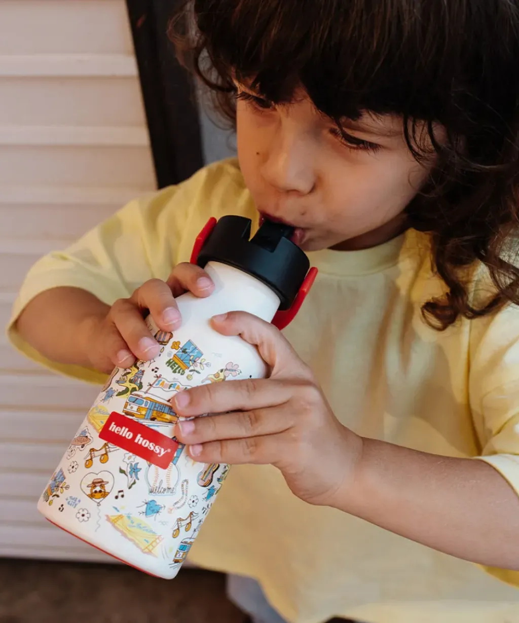 Optez pour la Gourde Isotherme pour enfants, San Francisco, de Hello Hossy. Tous les détails ont été réfléchis pour les kids : 350ml, anse de transport, paille (ou pas), base anti-dérapante.