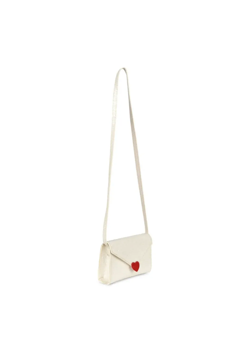 Sac à paillettes avec fermeture à bouton-pression sur le devant et bandoulière fine.