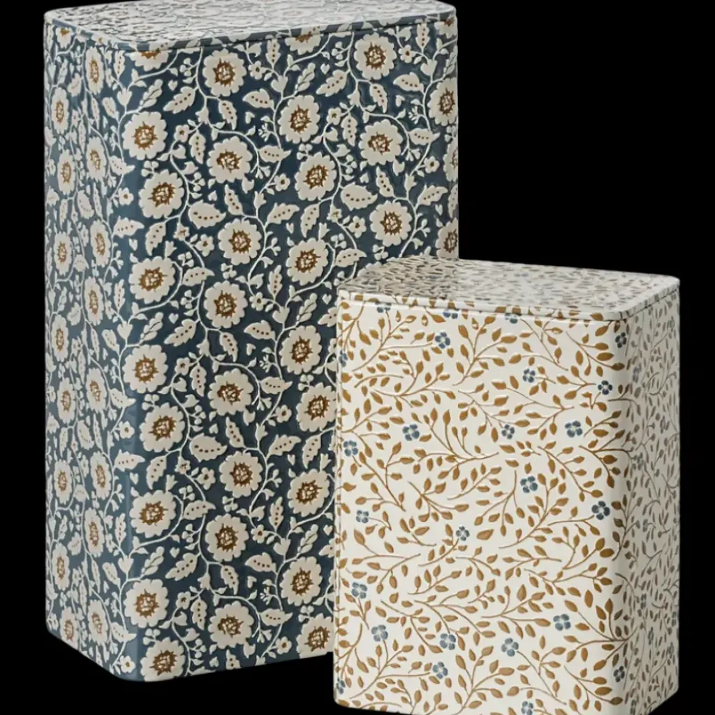 Un ensemble de deux boîtes en métal décorées de jolies fleurs imprimées et embossées. La grande est dans les tons bleus et la plus petite beige. Vous pouvez y ranger votre thé ou café préféré, ou ce que vous souhaitez 😉