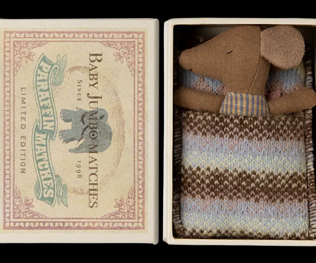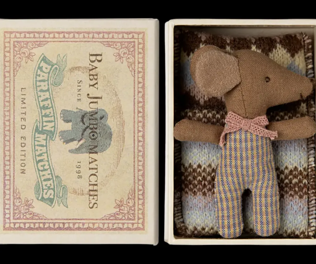 Nouvelle petite souris bébé fille dans sa boite lit . Jolie couverture en laine .