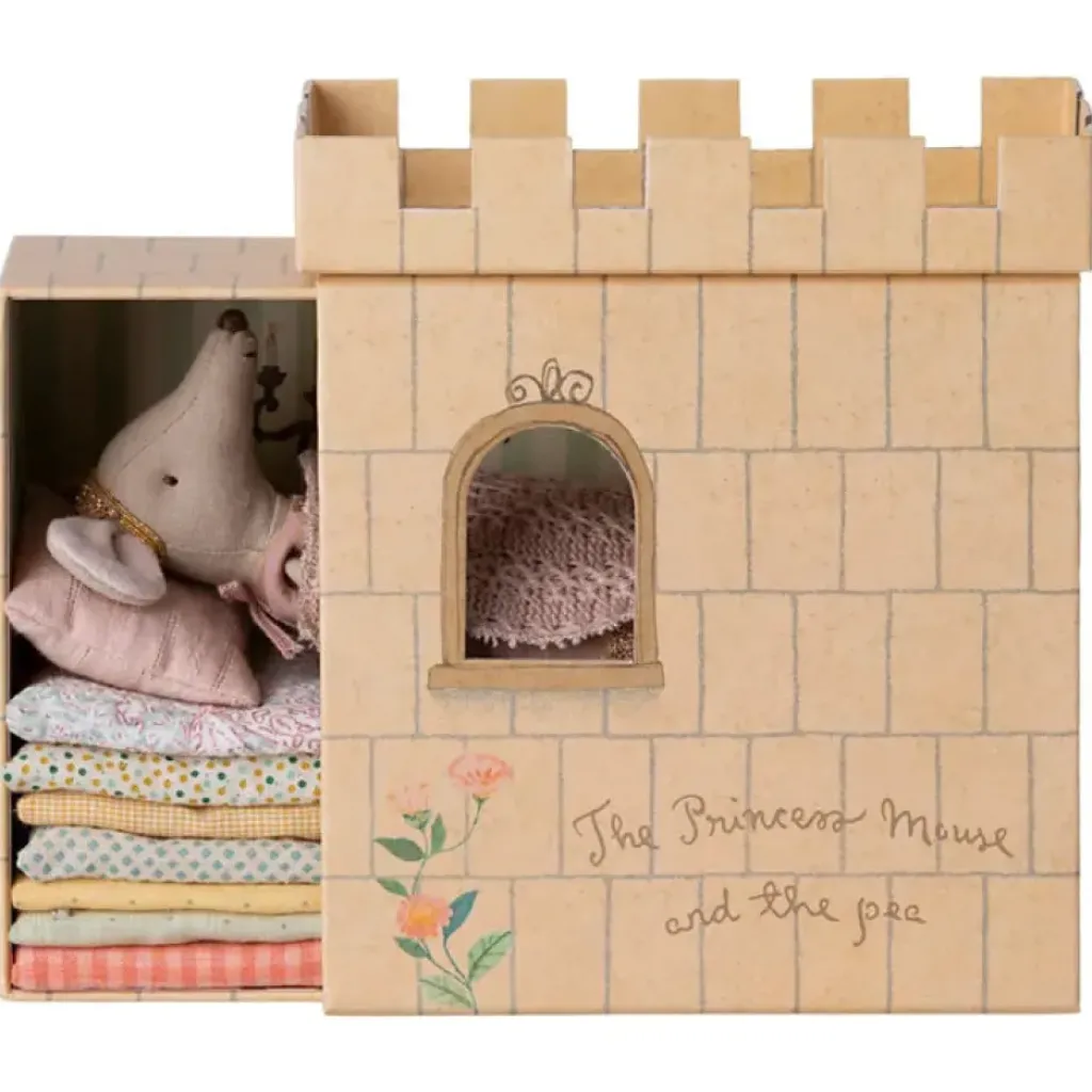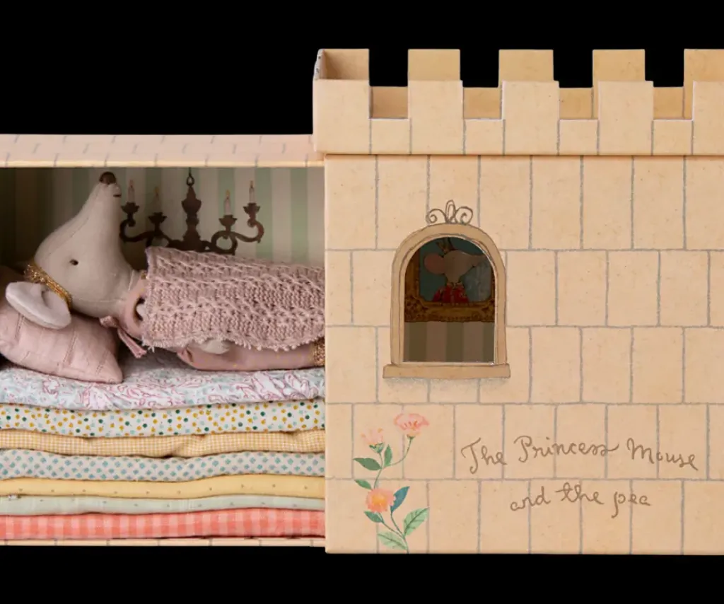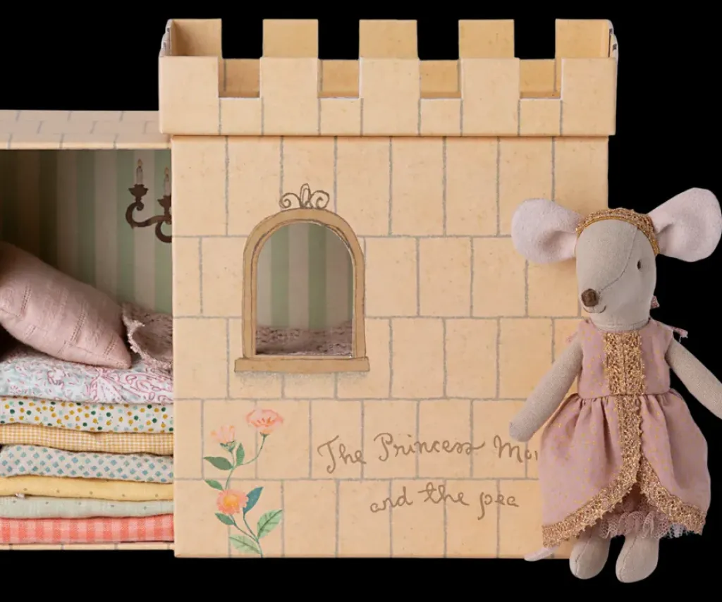 Un classique de Maileg. « La princesse et le petit pois » est la source d’inspiration de ce jeu. Comprend un château avec des matelas, un petit pois et une souris princesse. Combinez cet ensemble avec d’autre souris et accessoires.