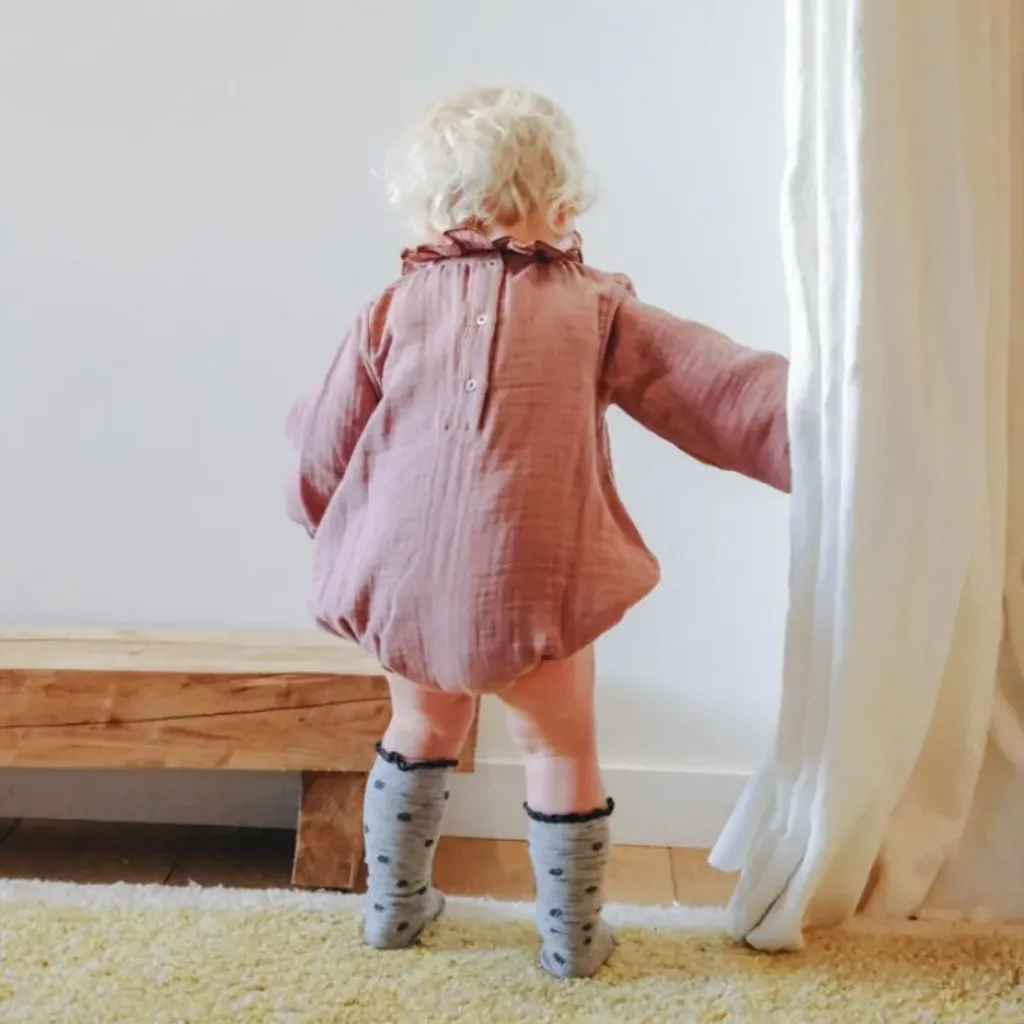 La barboteuse bébé fille en gaze de coton Amour porte bien son nom. Un modèle tout doux pour envelopper vos petites filles de douceur et une coupe adorable avec des petits volants sur le col et au poignets. La triple gaze de coton garde au chaud en hiver et apporte confort dans les mouvements. Les boutons pressions à l’entrejambe facilitent le change !