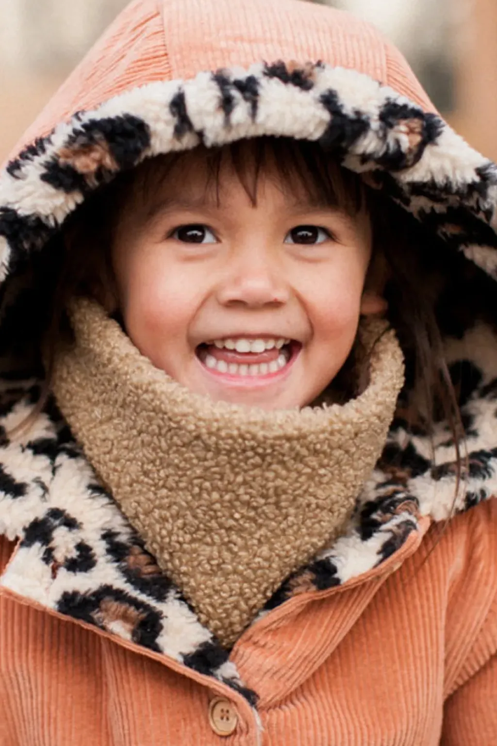 Le manteau Andrea en velours côtelé est un iconique de la collection Marlot Paris. Cette saison il revient dans une version sauvage avec une doublure en moumoute léopard hyper tendance ! C’est le petit manteau bien chaud et stylé qui va faire fureur cet hiver. On adore l’association léopard et rose sur nos filles !