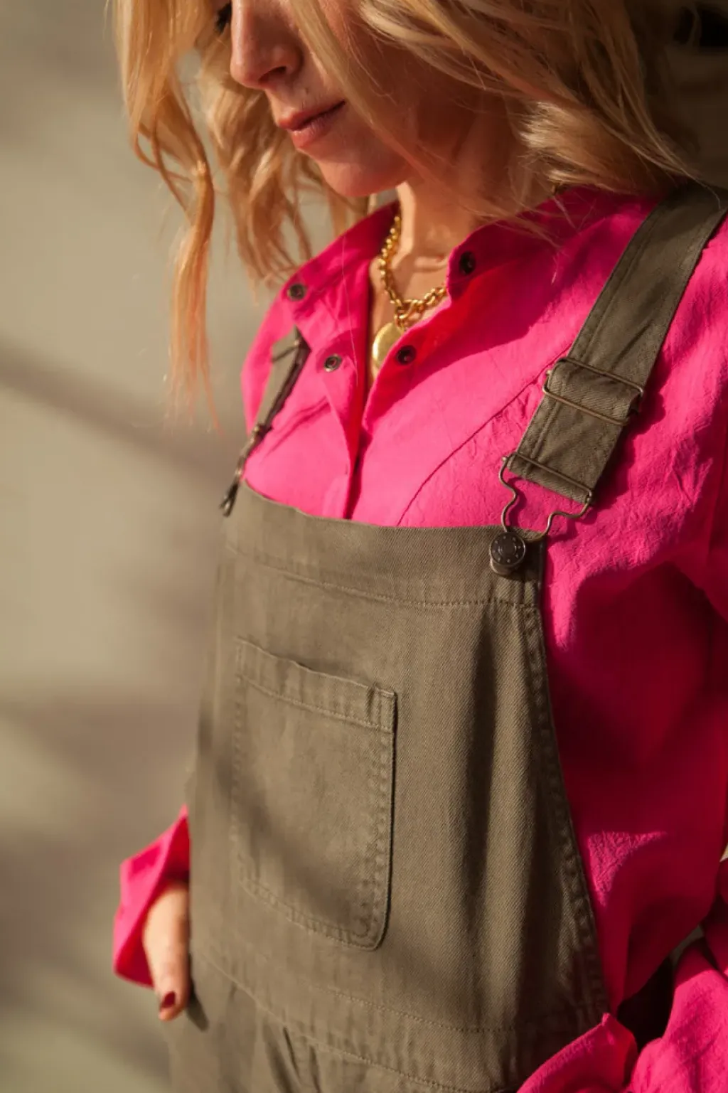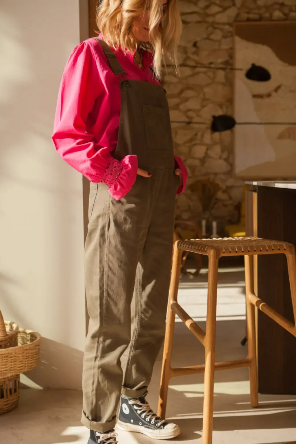 Salopette femme Kaki Marlot Paris. Voici IDA dans une version kaki chic et cool. La salopette est un modèle intemporel qui fait son grand retour. Dans une gabardine de coton qui tombe parfaitement, on aime l’associer à une blouse colorée ou un sweat.