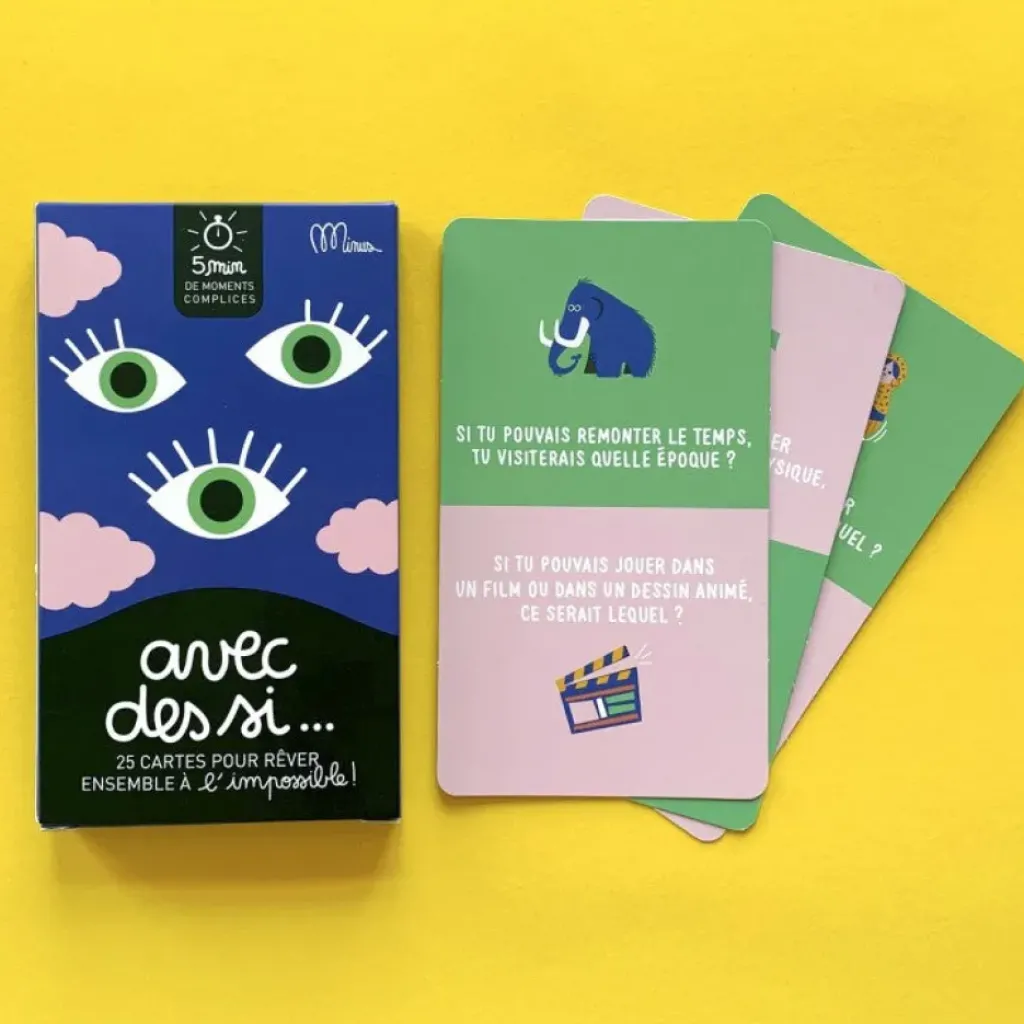 Avec des si, vous pourriez réinventer le monde mais aussi votre vie ! Chaque question vous offre 5 min (minimum) de discussion surréaliste pour découvrir quelle décision prendrait votre enfant, un ami, votre sœur… si vous pouviez imaginer l’impossible !