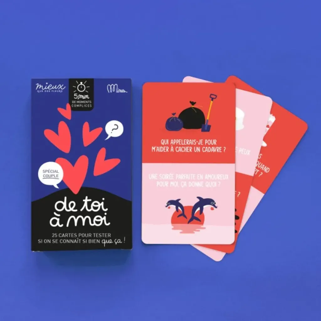 50 questions vous attendent et en vous glissant dans la peau de l’autre, vous allez découvrir si vous vous connaissez bien ! Des débats sans fin, des fous-rires assurés et surtout un chouette moment d’échange et d’amour, rien qu’à deux !