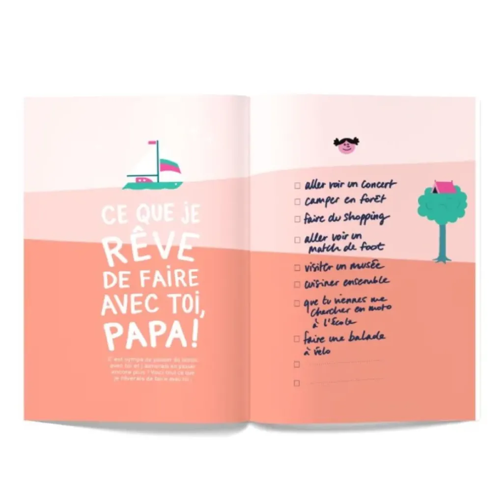 Mon papa chou, ma fille adorée ! Quel lien incroyable que celui qui unit un père et sa fille ! Un livre plein d’humour et de légèreté à remplir rien qu’à deux pour profiter de cette relation si particulière. Que l’on consomme une page par jour ou toutes d’un coup, père et fille sont certains de partager un moment de complicité !