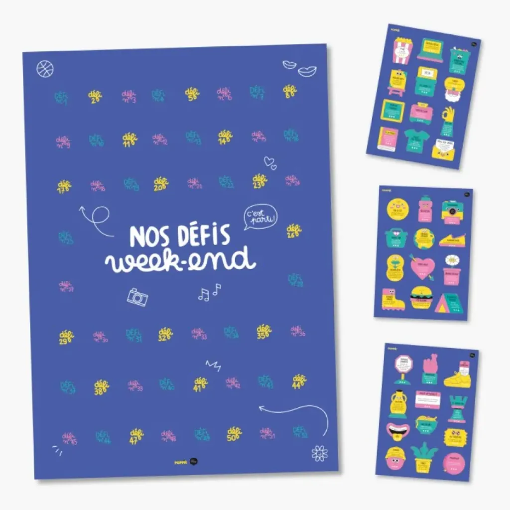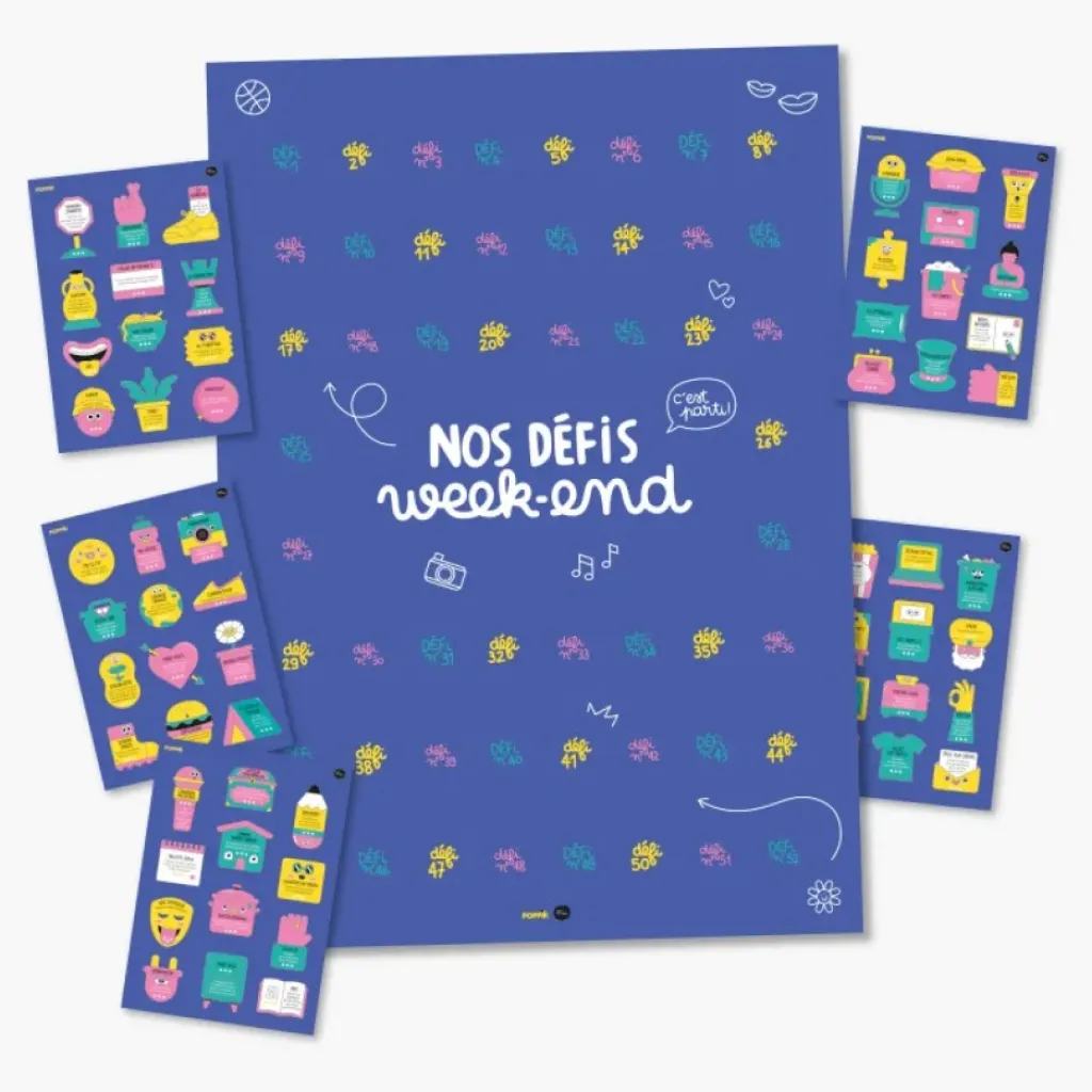 Choisissez ensemble 52 stickers défis parmi tous ceux proposés : échangez vos chambres cette nuit, recouvrez un mur de photos de vous, on prend tous 1 truc à lire pendant 1h… il y en a pour tous les goûts !