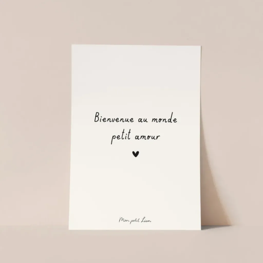 Carte A6 de Mon Petit Léon avec la citation : « Bienvenue au monde petit amour ».