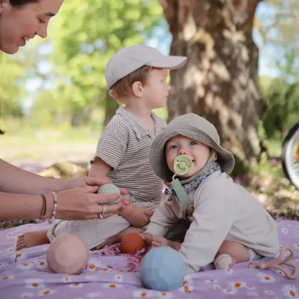 Encouragez la curiosité et le développement de votre tout-petit avec ce jouet sensoriel. Chaque sphère en silicone présente une couleur et une texture différentes pour stimuler l’exploration tactile et encourager les tout-petits à sentir, presser et découvrir de nouvelles sensations. La conception emboîtable permet aux sphères de s’empiler les unes dans les autres et le plus petit des trois émet un doux son de hochet qui est apaisant et excitant pour les oreilles de bébé.