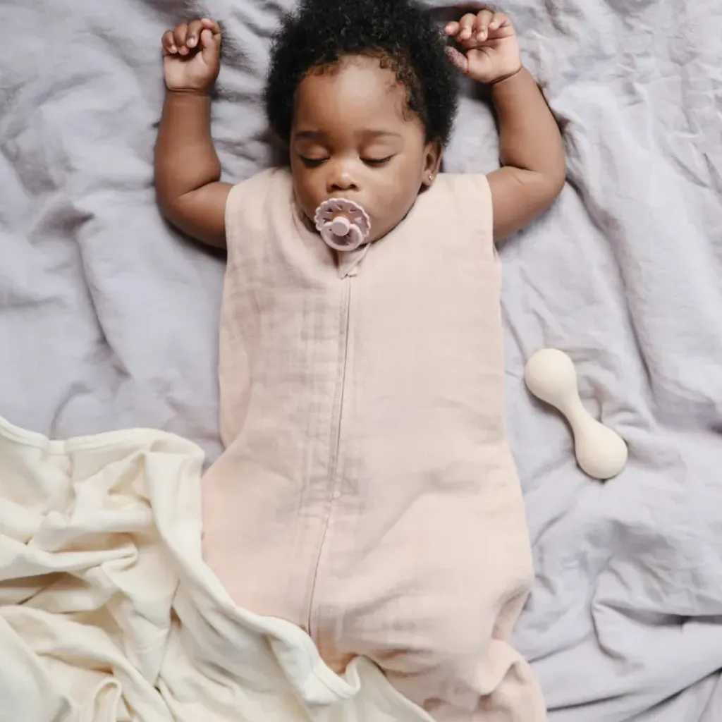Fait avec 100% de mousseline en coton organique, notre gigoteuse légère et respirable gardent vos enfants couverts et confortable de la sieste jusqu’au petit matin.