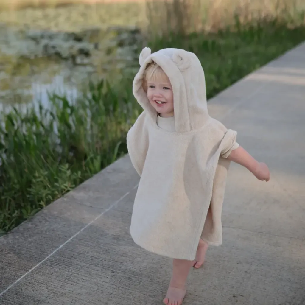 Cette serviette poncho est parfaite pour les peaux sensibles et des câlins douillets après le bain ou la baignade. Un poncho ouvert qui facilite l’enfilage et le retrait ; le tissu est absorbant et durable, restant doux après lavage. Doté d’une capuche attachée avec d’adorables oreilles d’ours, les tout-petits profiteront d’une expérience de séchage douce et chaude de la tête aux pieds.