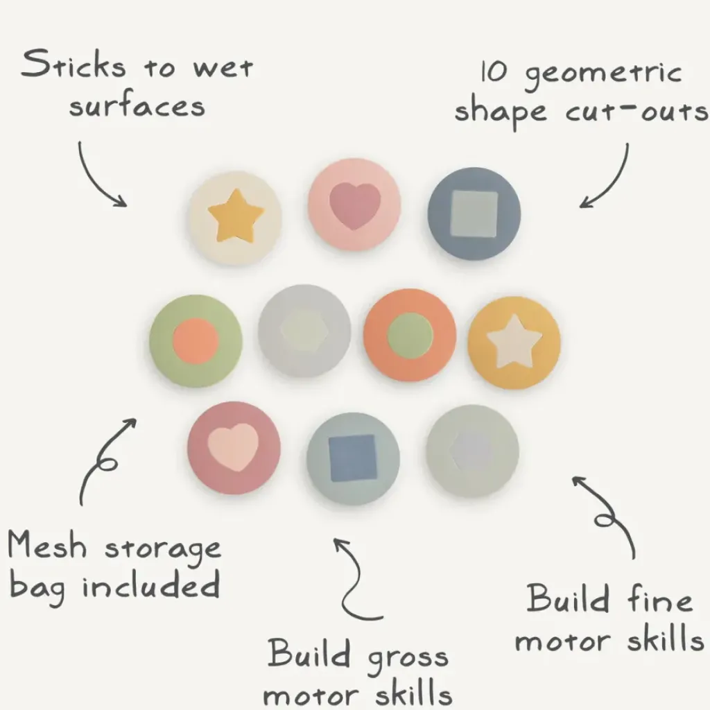 Faites sensation à l’heure du bain avec le puzzle géométrique en mousse de Mushie qui allie apprentissage et jeu. Les pièces flottent facilement sur l’eau et adhèrent aux surfaces du bain. Doté de 10 pièces circulaires avec 10 découpes de formes géométriques, cet ensemble offre des avantages éducatifs lorsque les petits insèrent les formes dans leurs trous correspondants. L’ensemble est livré avec un sac de rangement en filet pour aider à garder les choses en ordre après le bain.