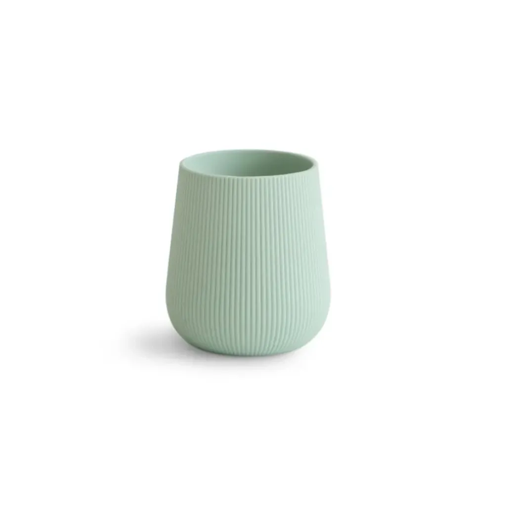 Facilitez la transition du biberon à la tasse avec la tasse en silicone de chez Mushie. Une tasse avec la capacité de contenir de petites quantités de liquides froids ou chauds, offrant une prise antidérapante, un élément attrayant pour les bébés lorsqu’ils s’entraînent à boire dans une tasse ouverte, et une base qui empêche les renversements.