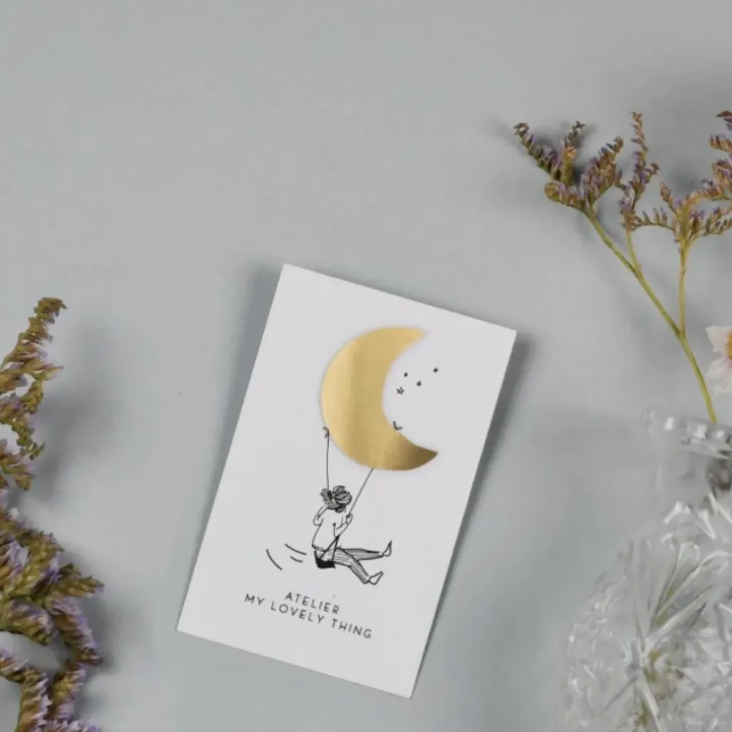 Un beau pin’s lune en laiton qui habillera vos plus jolis pulls, gilets ou vestes.