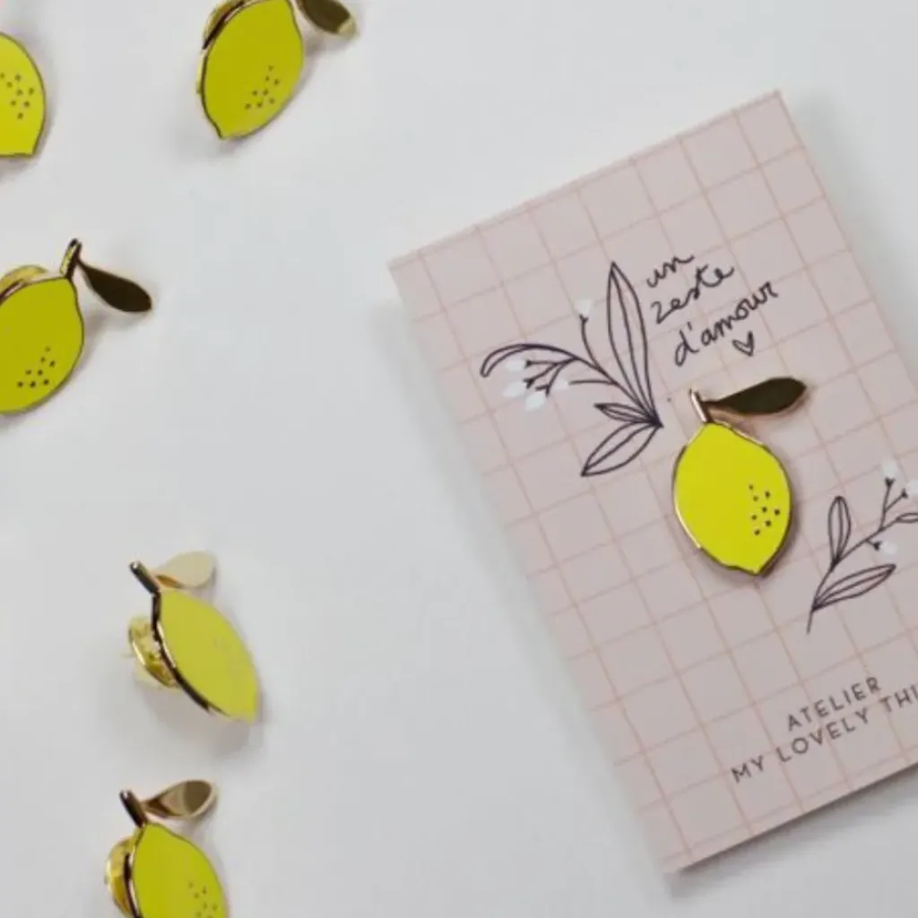 Un beau pin’s citron en laiton qui habillera vos plus jolis pulls, gilets ou vestes.
