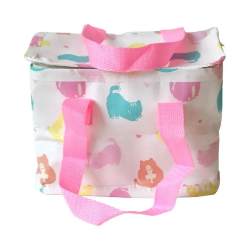 Des petits chats multicolores trop mignons à emmener partout. Ce sac à lunch box sera parfait pour toujours avoir un casse-croute avec soi !