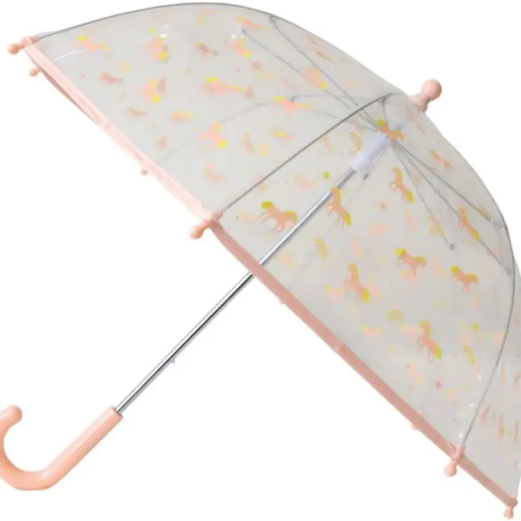 Il pleut ? Pas de problème, votre enfant va adorer sortir son parapluie transparent à imprimé licorne ! Pour voir la vie en couleurs même si il pleut, ce parapluie va être l’accessoire préféré de votre bout de chou. Transparent, il permet de voir à travers tout en restant au sec.
