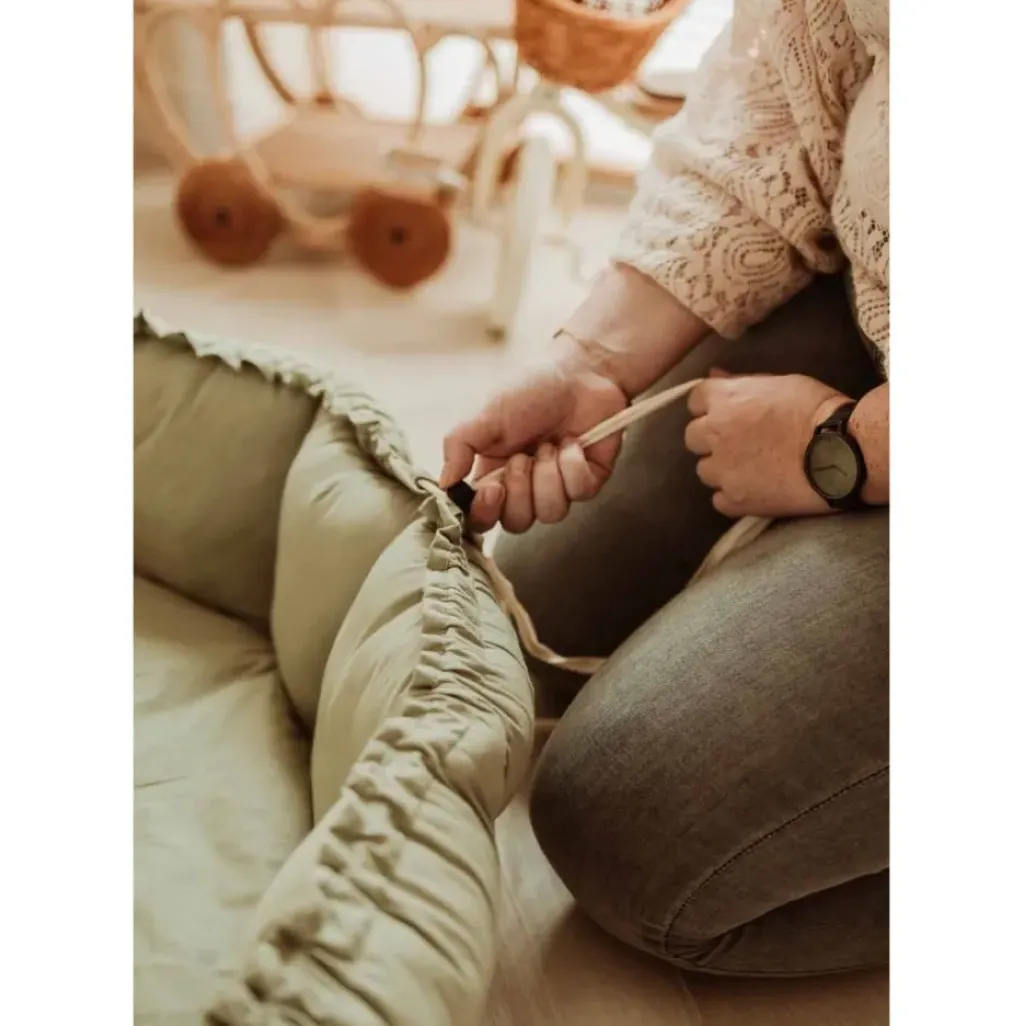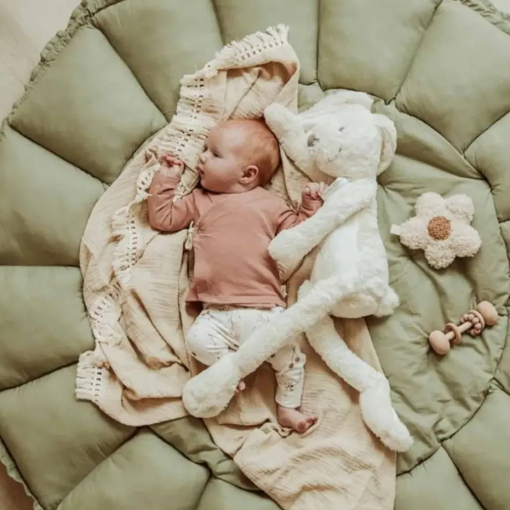 Ce tapis d’éveil est très pratique lorsque les pétales sont redressés, vous pouvez l’utiliser en tant que parc d’éveil au contour sécurisant, ou encore en panier de rangement. Les pétales sont redressés grâce à un système de cordes qu’on tire, une action simple qui s’effectue en moins d’une minute pour aller du tapis au panier. Agréable et moelleux, c’est un produit parfait pour les premiers mois de bébé.