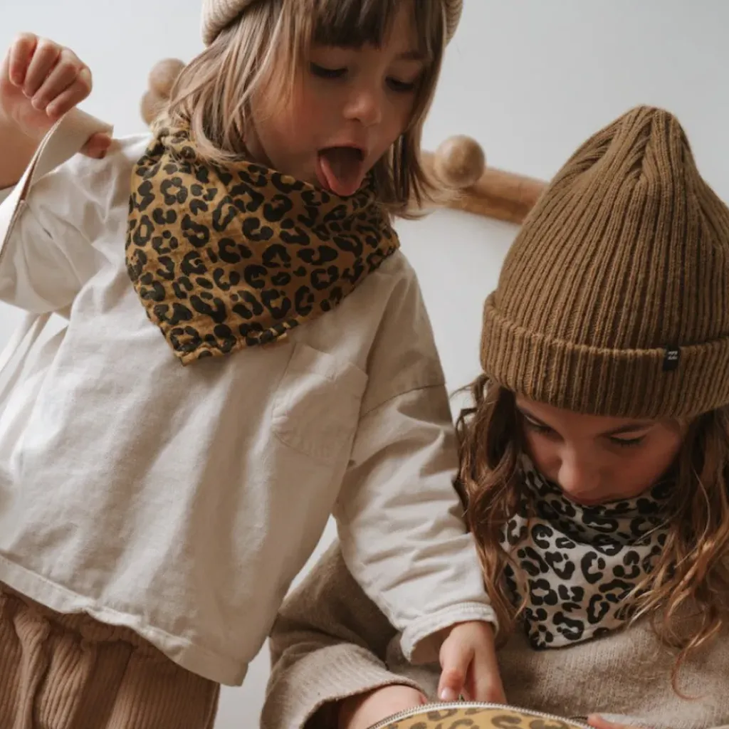 Nouveau lange Rose in April imprimé Graou, une touche de léopard. Le lange aux multiples utilisations : petit chèche autour du coup, bavoir, protége épaule, housse de matelas à langer… Certains enfants décident même d’en faire leur doudou !