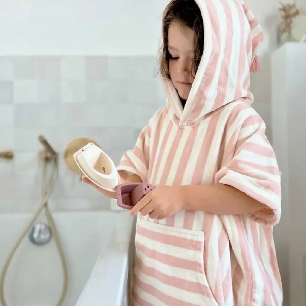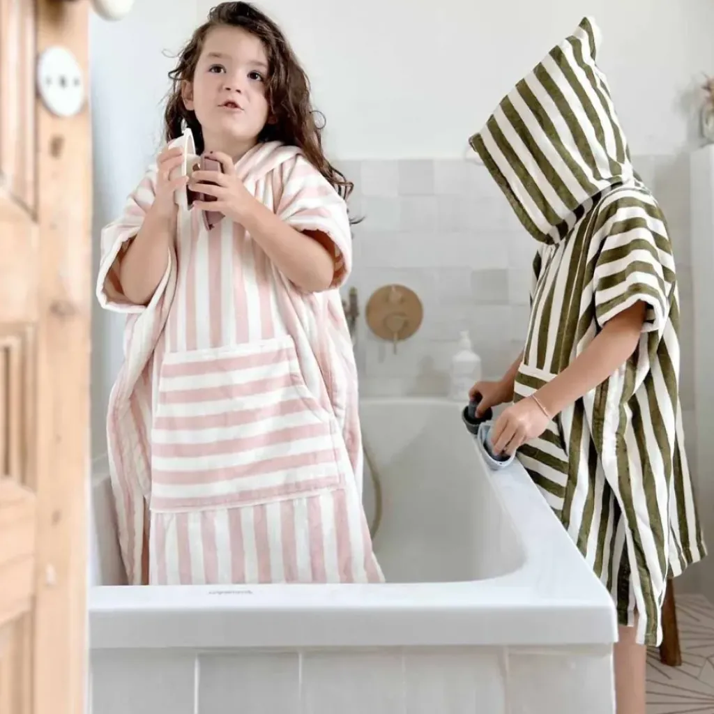 Quand on est petit, c’est tellement bon de s’emmitoufler dans un poncho en sortant du bain et tellement plus pratique qu’une serviette aussi. A utiliser également pour les sorties à la plage ou à la piscine.