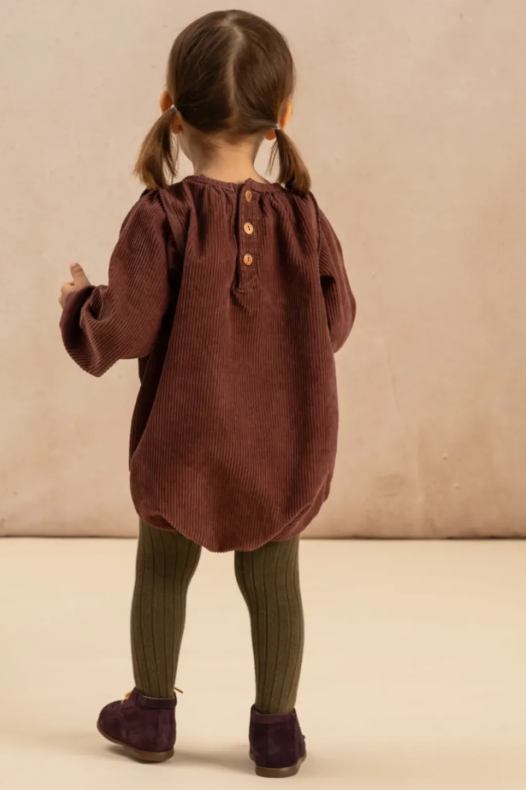 Jolie barboteuse prunes manches longues en velours côtelé. Avec des collants épais elle sera parfaite cet automne hiver !