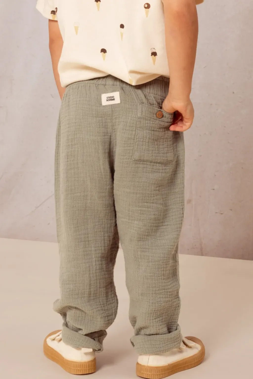 - Etiquette Studio Bohème décorative au dos du pantalon.