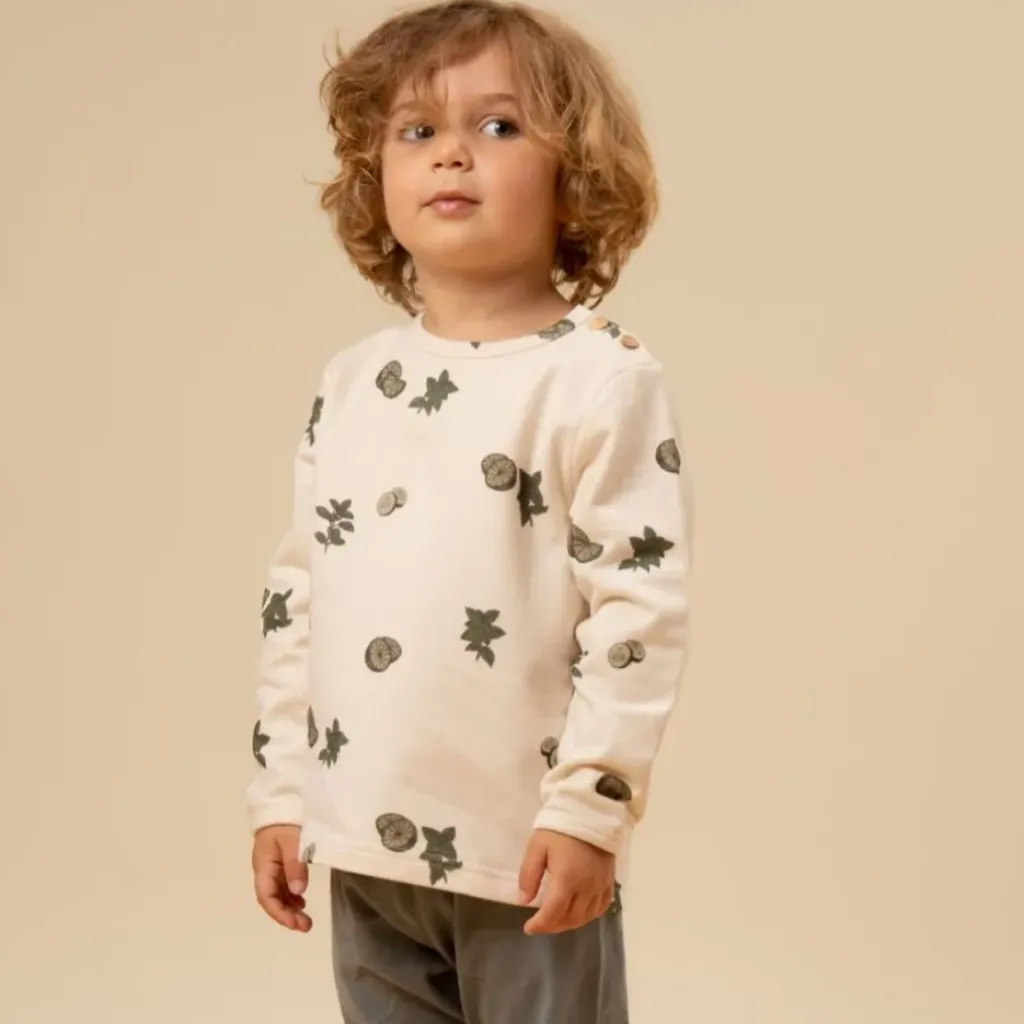 - Boutons en bois à l’encolure pour faciliter le passage de la tête.