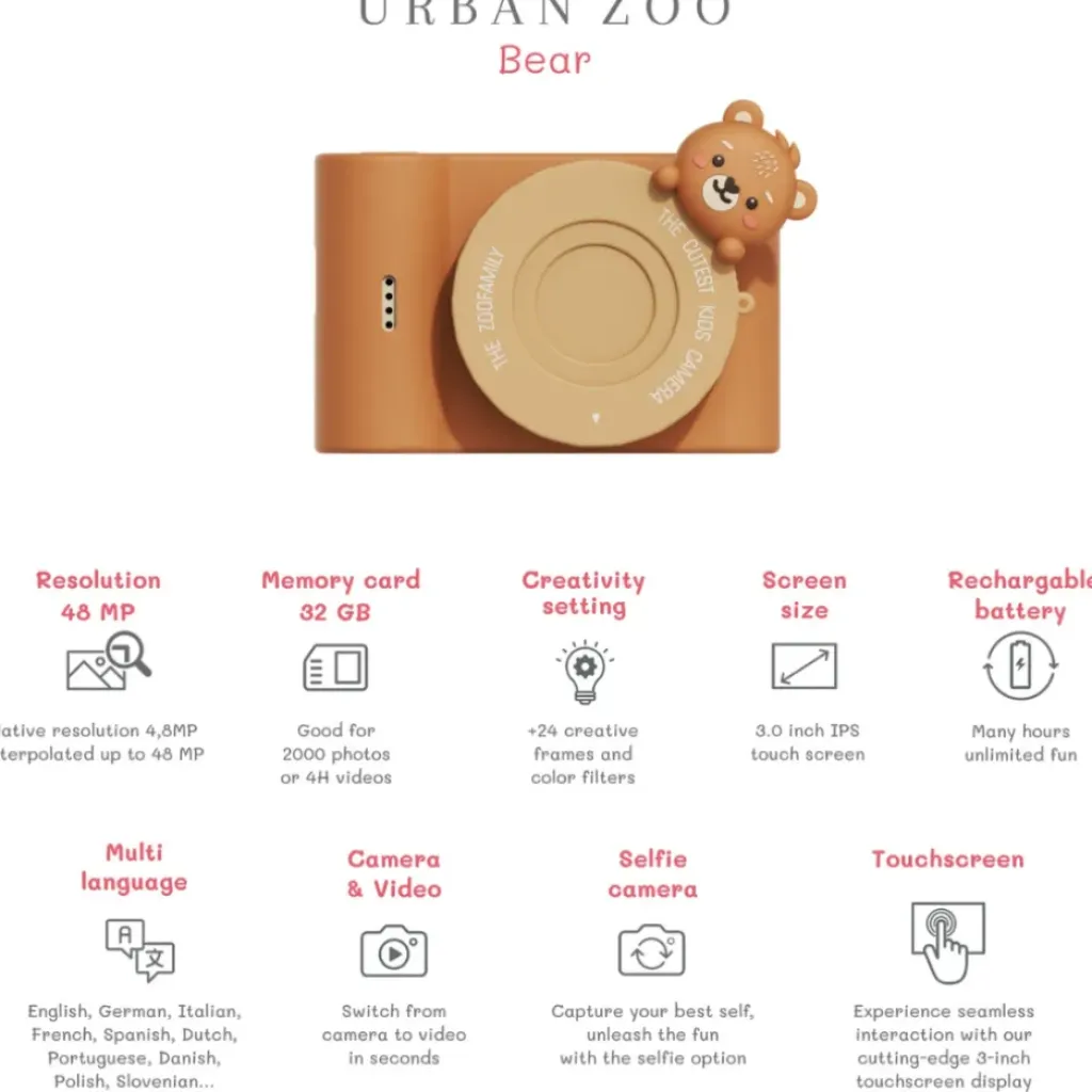 Appareil photo pour enfants de première classe, stimulant l’imagination en Full HD ! Regardez l’imagination de votre enfant prendre vie dans des vidéos haute définition époustouflantes. L’appareil photo pour les enfants Zoofamily offre une résolution vidéo impressionnante de 1080P, d’une résolution de 48MP à l’arrière et à l’avant donnant vie à chaque moment avec des couleurs vives et une clarté exceptionnelle. Insufflez une touche de magie et de sécurité avec le capuchon d’objectif à thème renard inclus. L’écran tactile intelligent offre une définition cristalline, facilitant la navigation. Votre jeune photographe peut facilement ajuster les paramètres, examiner les captures et éditer ses créations.