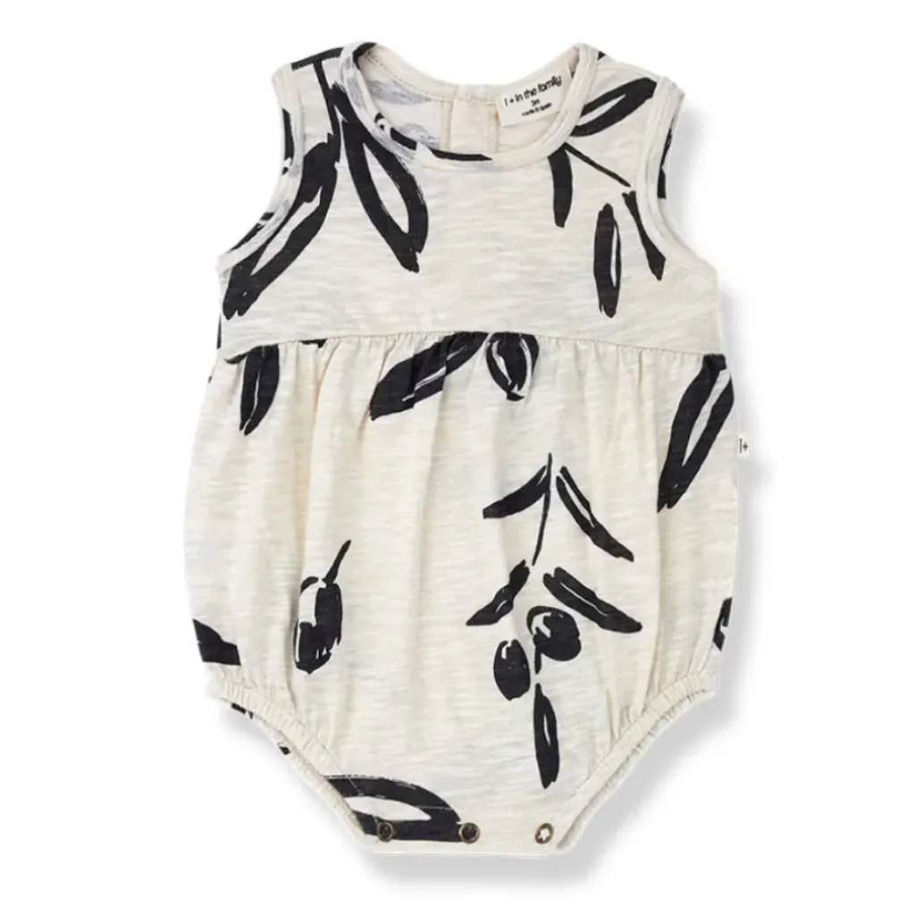 Coup de coeur pour cette barboteuse en coton à imprimé fleurs noires. Pressions à l’entrejambe.