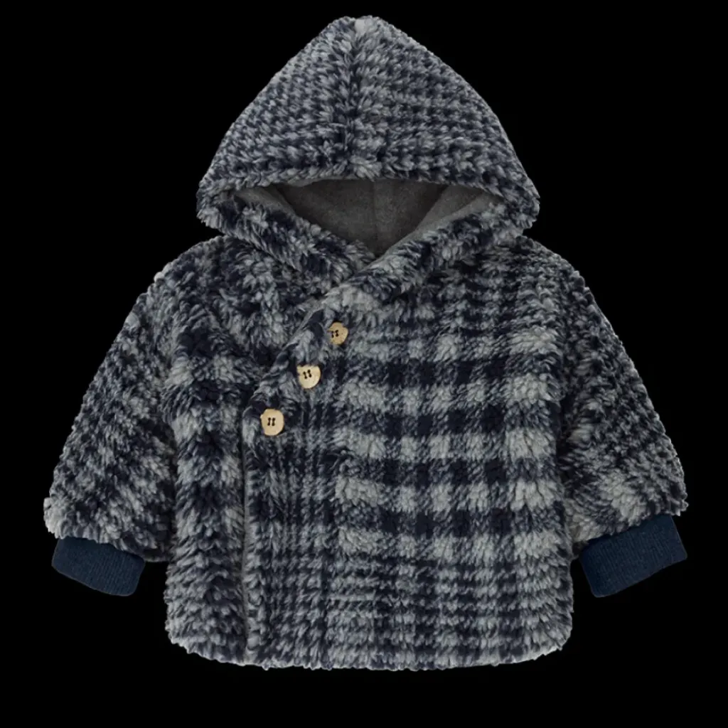 Redécouvrez le manteau Ethan avec un nouveau motif carreaux en gris et marine. Poignets ressérés pour rester bien au chaud. Jolis boutons en bois sur le côté.