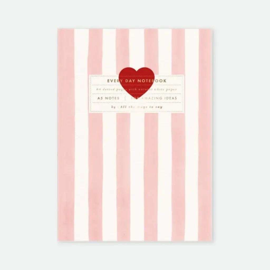 Un beau cahier rose à rayures pour y noter toutes ses envies et pensées.
