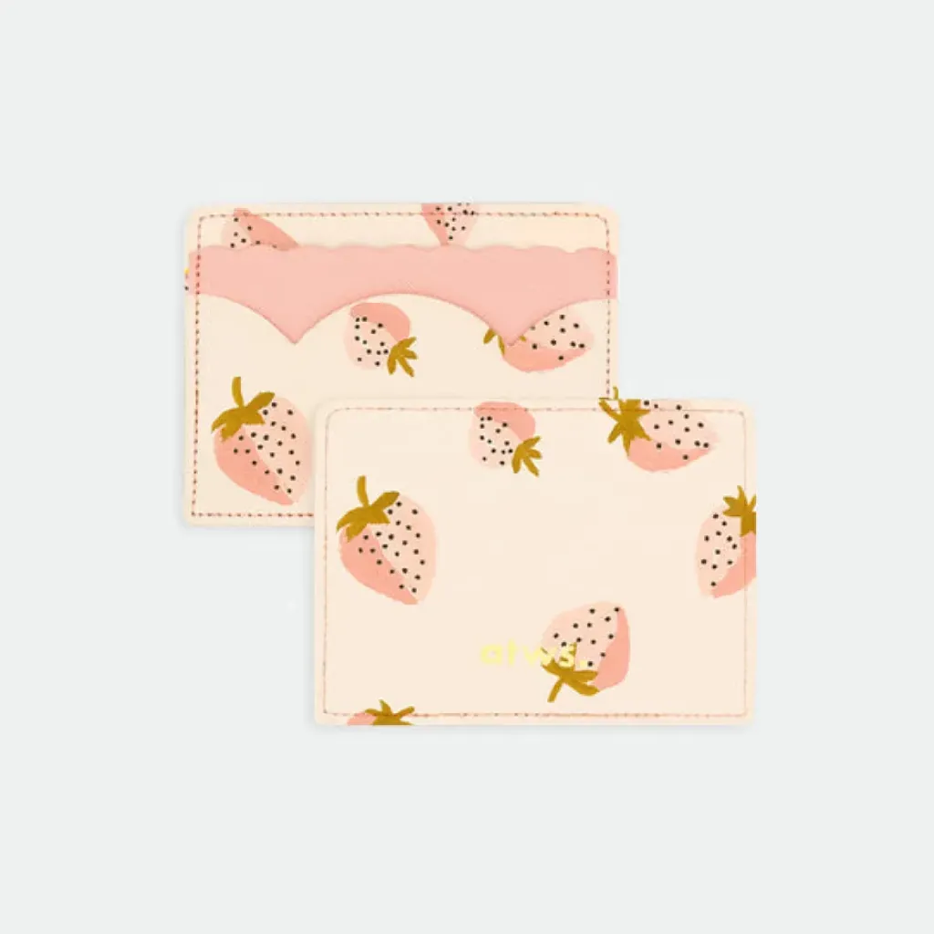 Porte cartes rose au motif fraise avec une touche de doré pour un effet girly.
