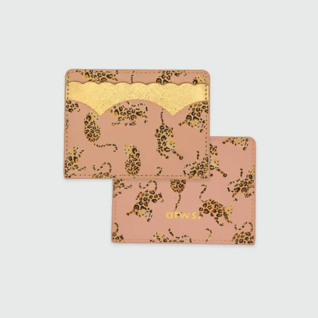 Porte cartes rose au motif léopard avec une touche de doré pour un effet girly.