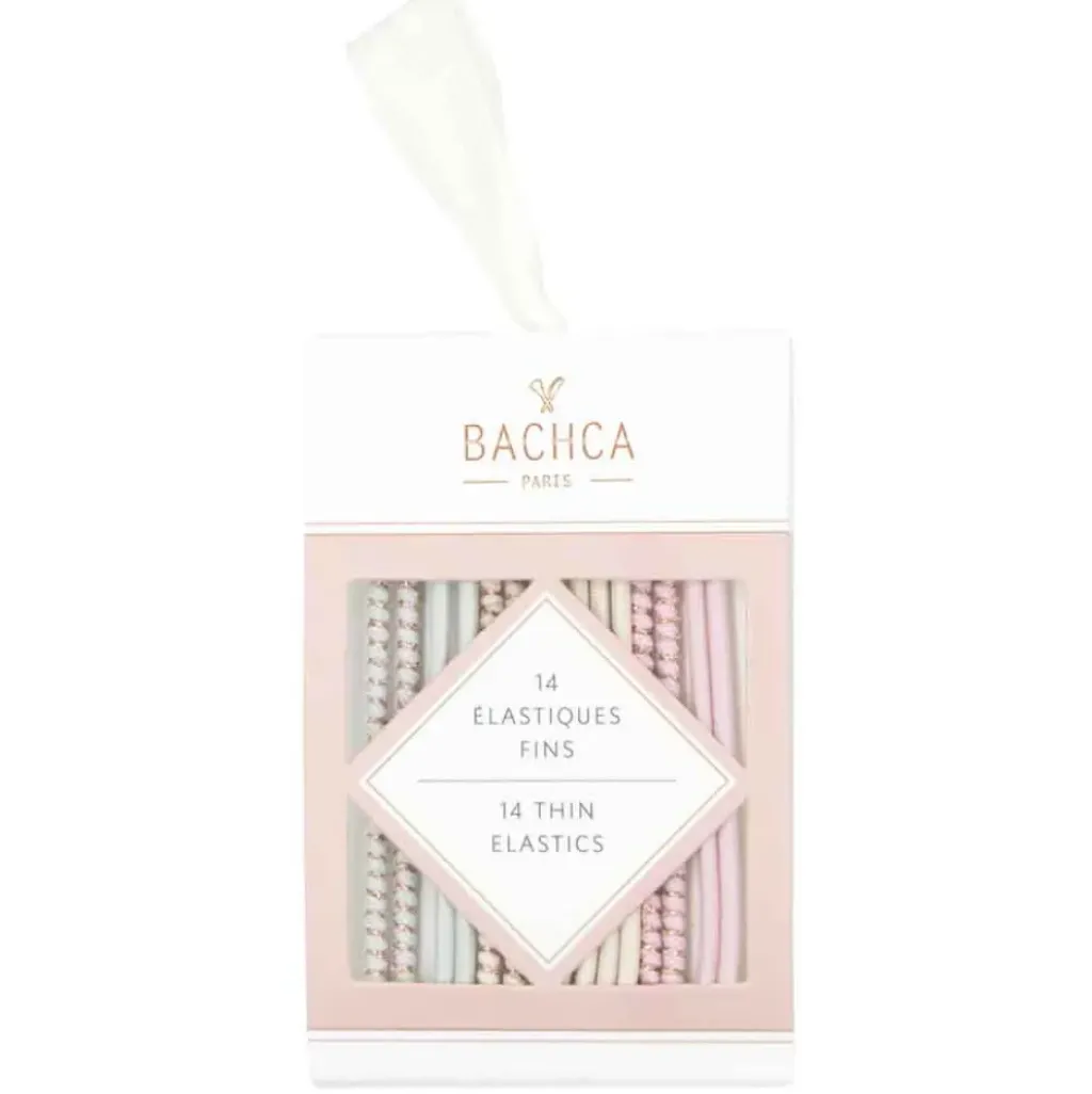 Déclinés dans les tons pastels et ornés d’un fil lurex cuivré, les élastiques Bachca peuvent être utilisés en toutes circonstances.
