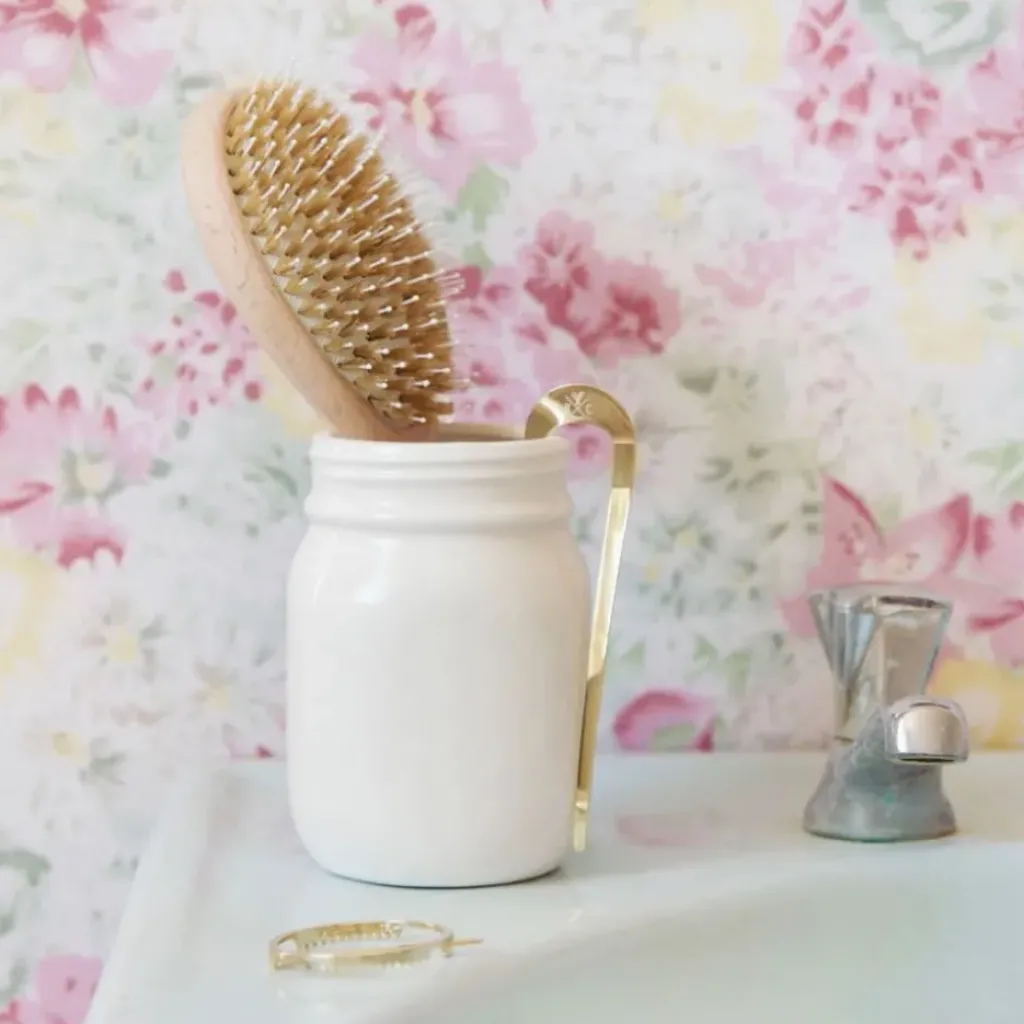 Grande brosse en bois naturel, idéale pour démêler et faire briller les cheveux grâce à l’association des picots sanglier et nylon.