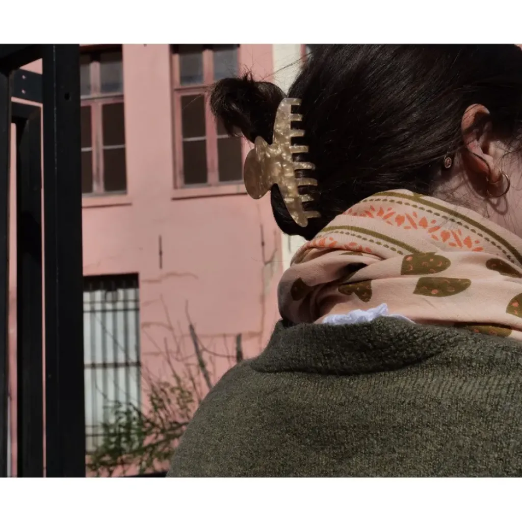 Joli foulard au motif exclusif dessiné par Bonheur du Jour et imprimé coeur à la technique indienne du blockprint