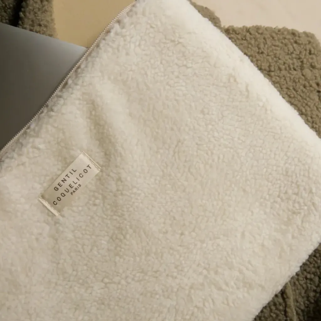 Emportez votre ordinateur portable dans cette jolie housse d’ordinateur en sherpa beige de Gentil Coquelicot Paris