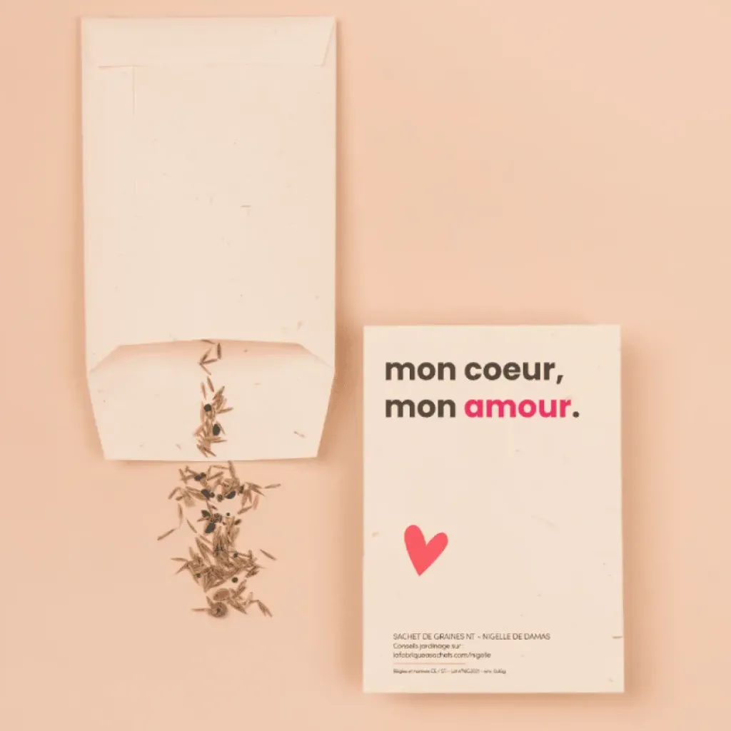 Carte avec des sachets de graines à semer de « La Fabrique à Sachets ». Une façon originale et symbolique de faire plaisir à quelqu’un ! Cultivez et faites éclore vos liens uniques qui vous lient !