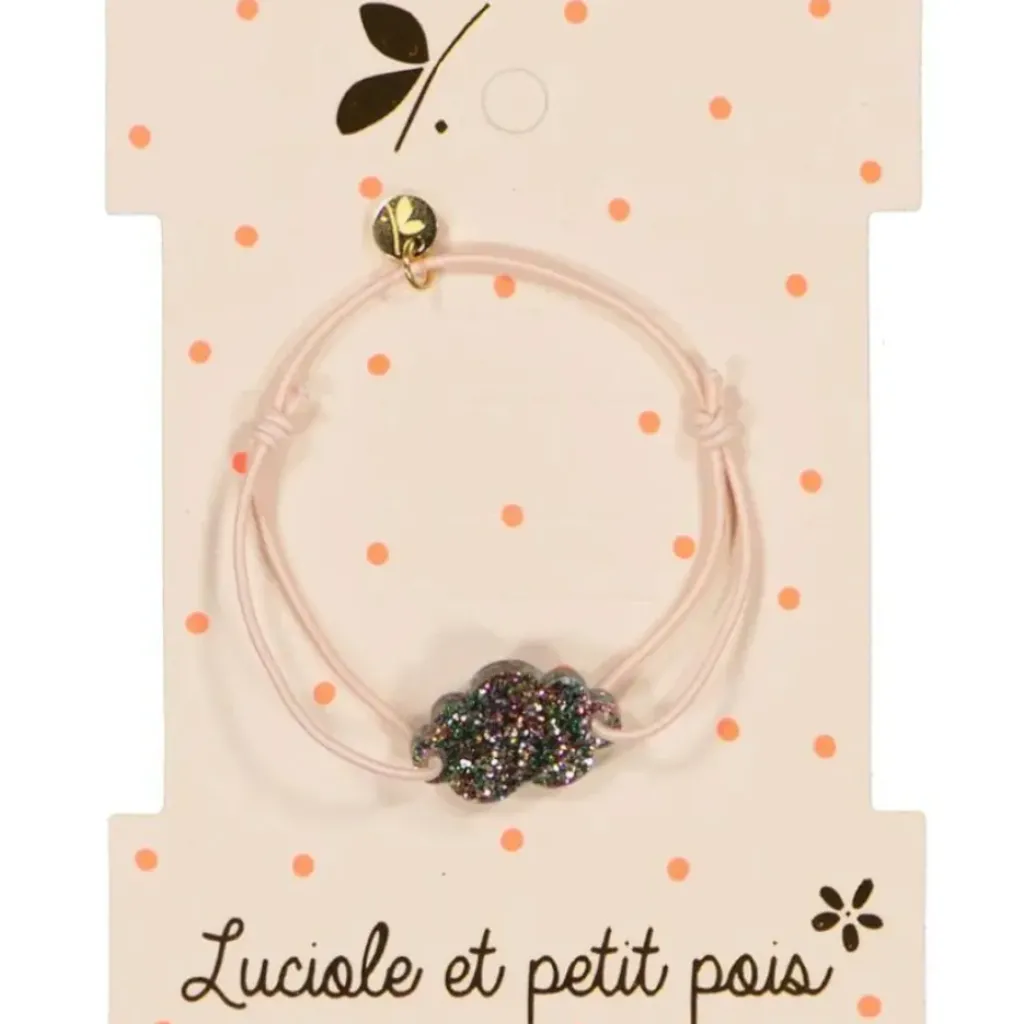 Bracelet ajustable élastique rose avec nuage argenté. Parfait cadeau pour les anniversaires des copines !