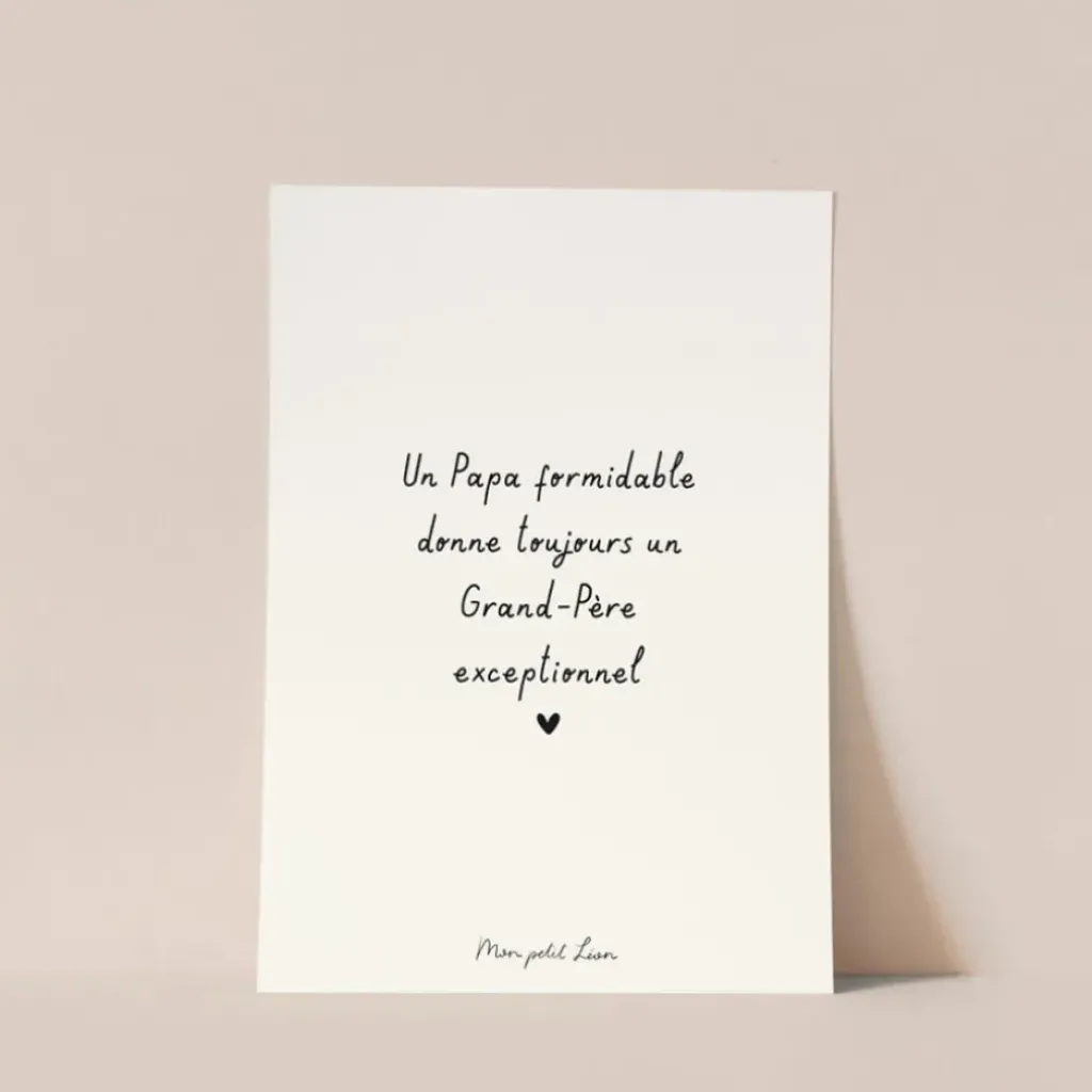 Carte A6 de Mon Petit Léon avec la citation : « Un Papa formidable donne toujours un Grand-Père exceptionnel ».